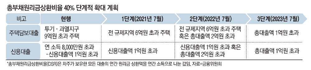 DSR 산정 시 신용대출 상환 기간도 10년→5년 축소