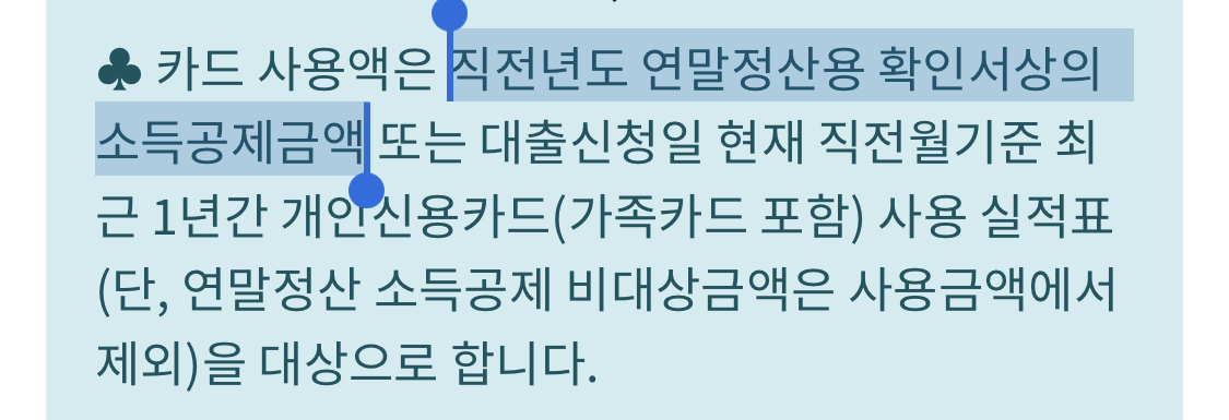 1. 대출 신청일의 직전년도 연말정산용 확인서상의 소득공제금액