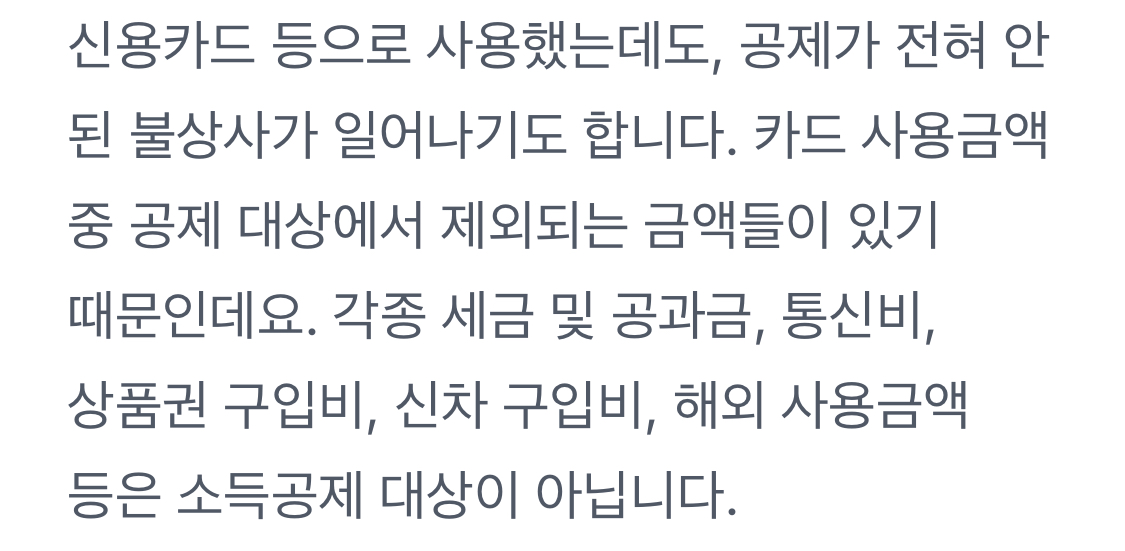 신용카드 공제대상이 아닌 금액들 신용카드사용금액에서 제외되니 유의할 것.