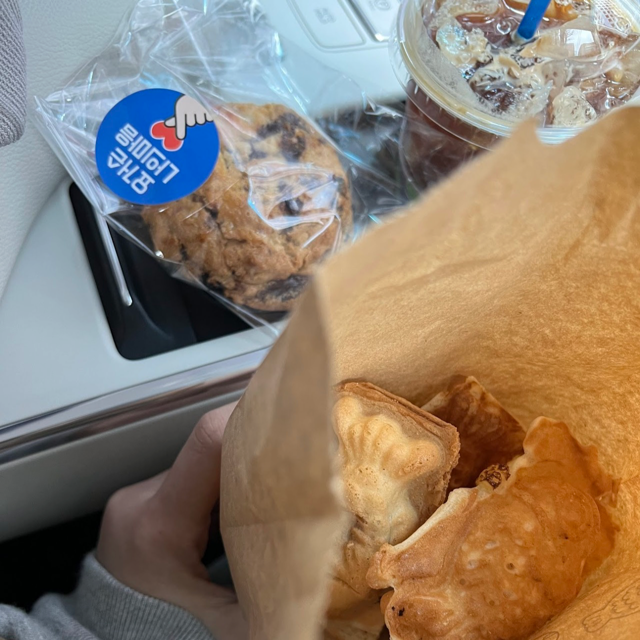 여의도 미원빌딩 1층에서 평양냉면을 먹고 나오는데 어디선가 흘러나오는 쿠키 굽는 냄새에 홀려 맞은편에 있는 카페로 향했다. 쿠키와 미니붕어빵 사이에서 고민하다가 붕어빵과 커피를 사서 나오는데 글쎄 훈남 사장님이 쿠키를 서비스로 챙겨주셨다!