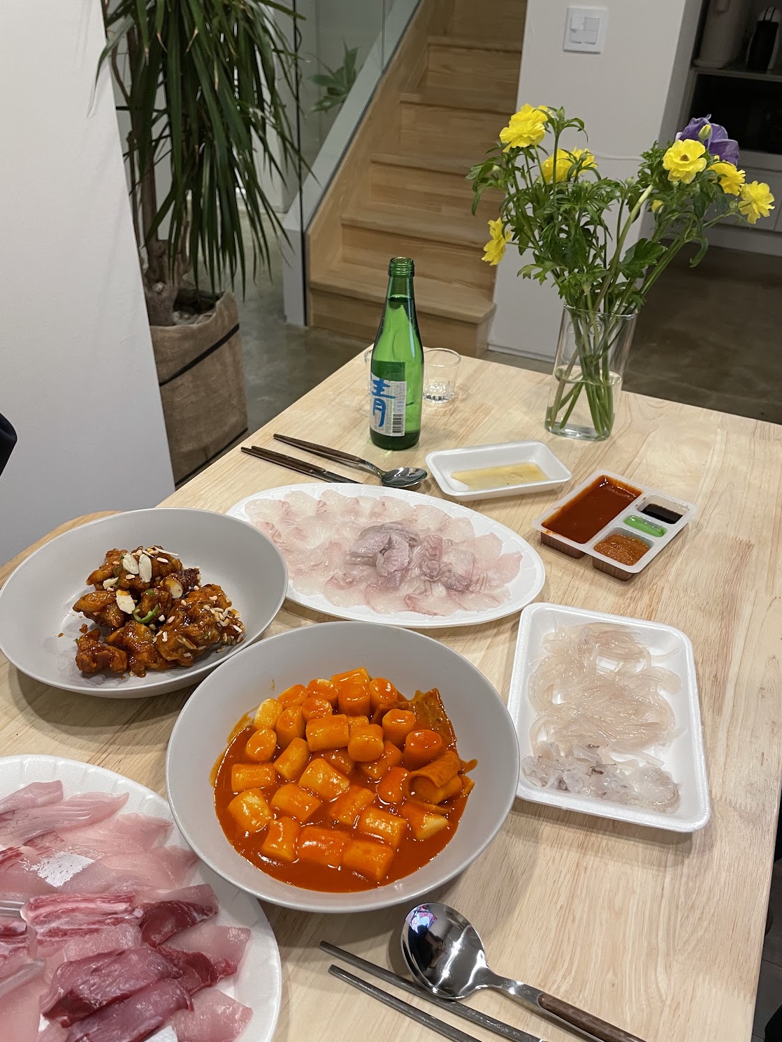 수요일도 재택근무가 끝나자마자 오린이와 오린이 친구가 집에 와서 우기식당 육지점에서 주문한 감자전과 항정살 어쩌구 메뉴를 먹었다. 역시 술쥉이들과의 식사에선 술이 한 번도 빠지지 않는 법인가보다. 가계소득의 절반을 식비로 지출했던 한 달 같다.